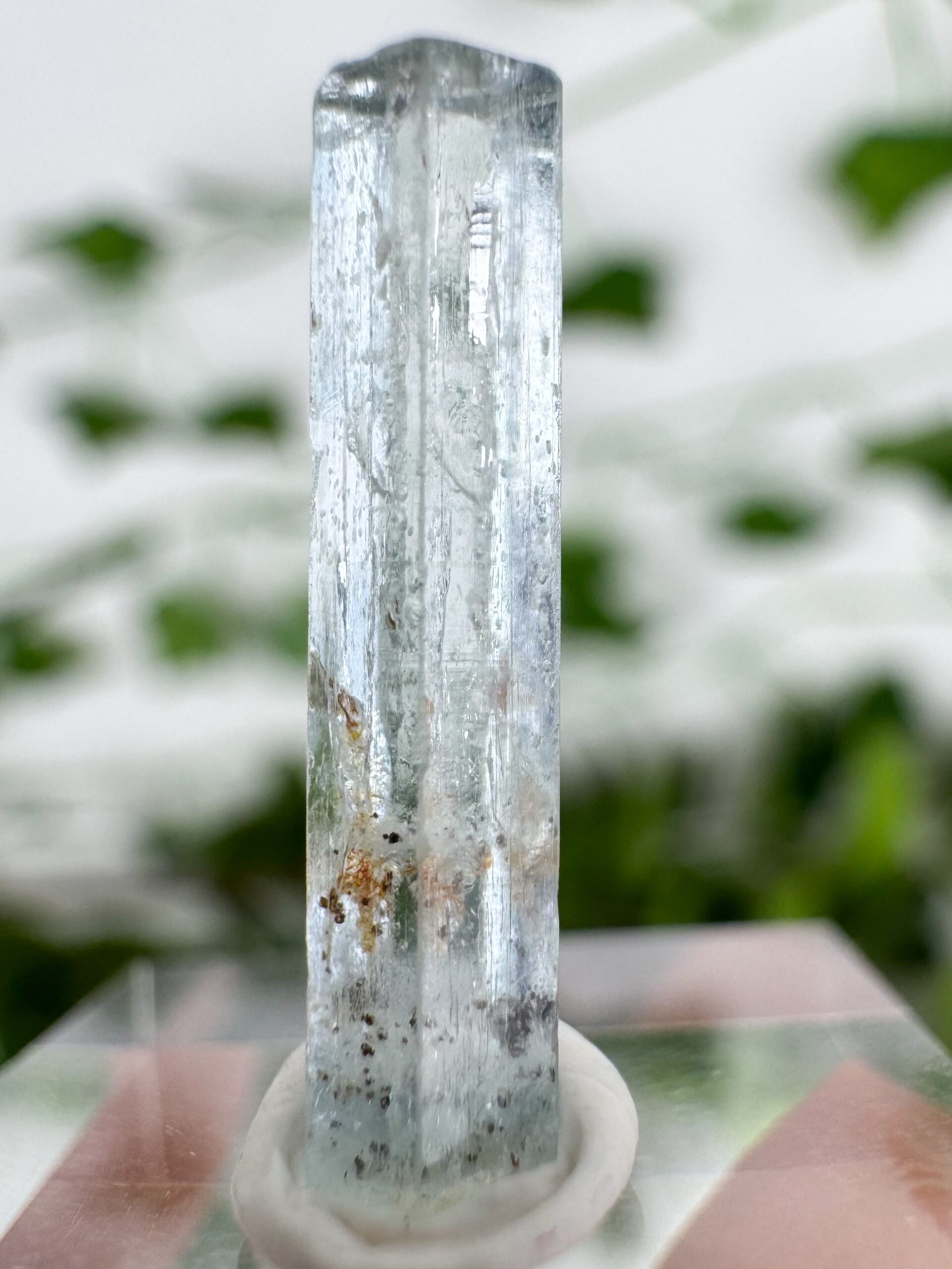 Mineralien mit scharfen oder spitzen Kanten können empfindliche Oberflächen wie Holz oder Glas beschädigen. Verwende eine Unterlage, um Kratzer zu vermeiden.