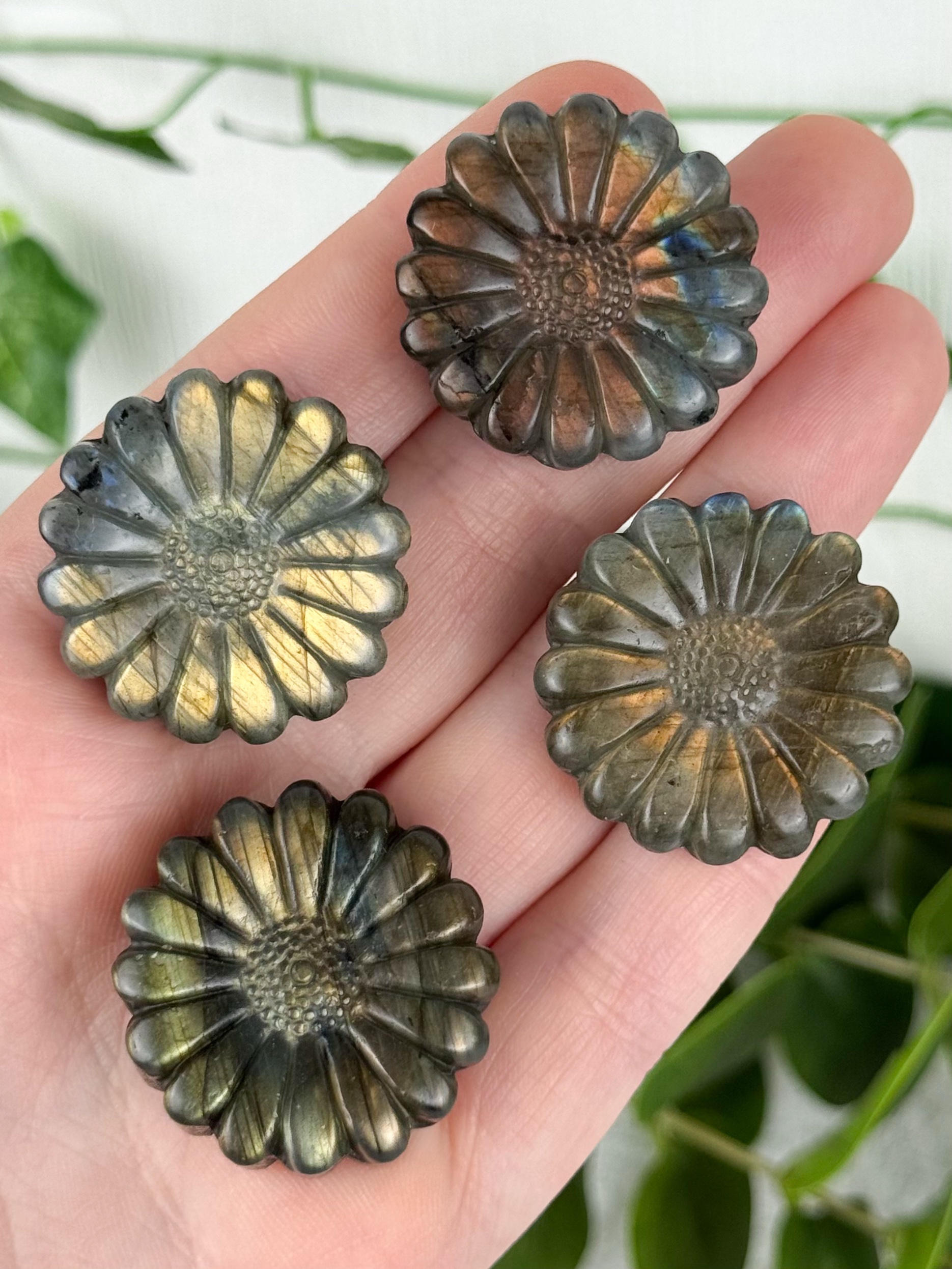 Beim Kauf des Produkts erhältst du eine von uns intuitiv ausgewählte Labradorit Blume. Das Bild dient als Beispielbild.