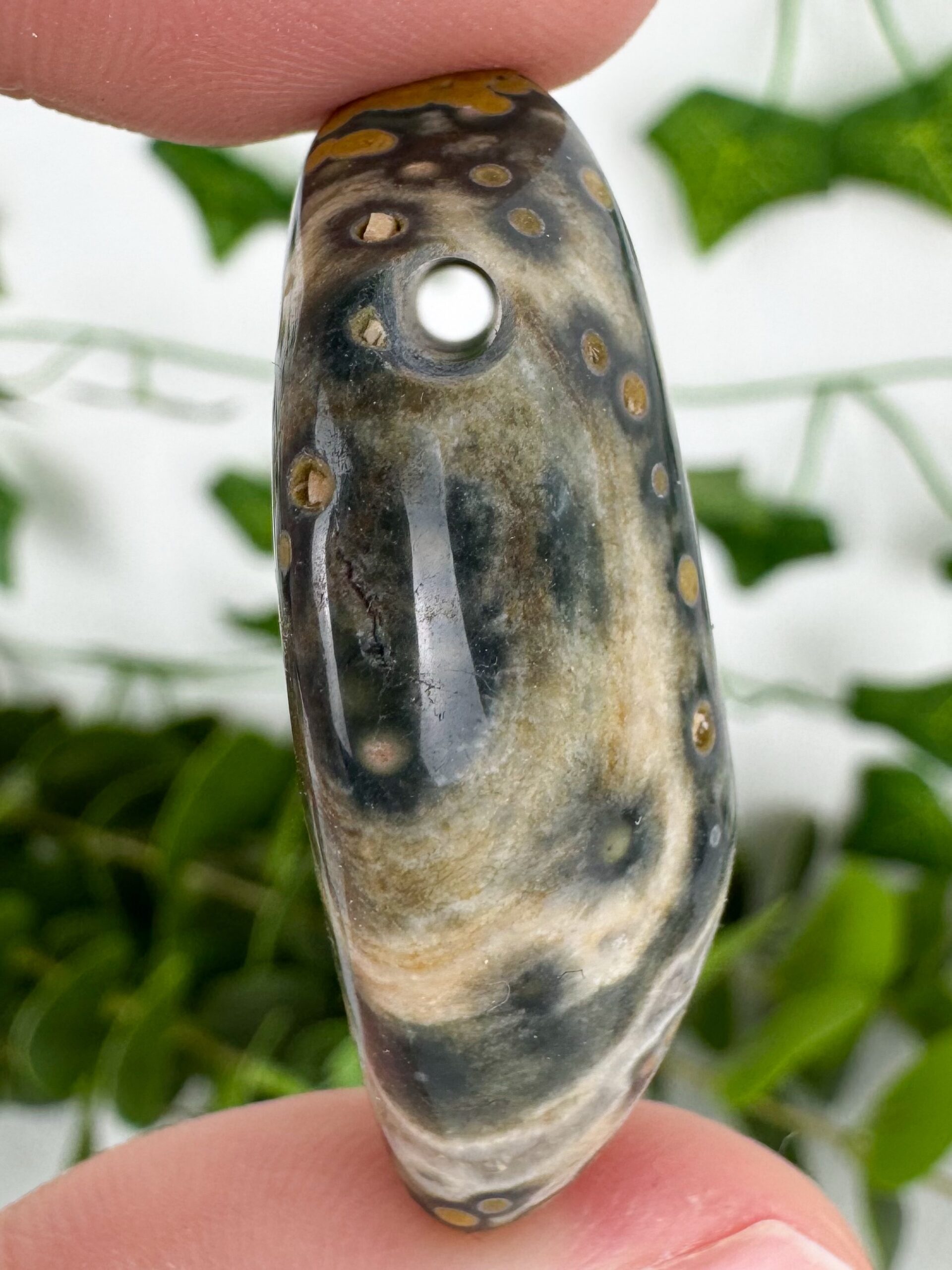 Ozeanjaspis (oldstock) Trommelstein mit Querbohrung Nr. 40od